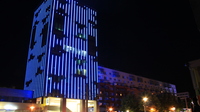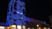 Der KatharinenturmEine Lightshow der anderen Art Mit etwas Musik kann der Rave auf der Straße starten